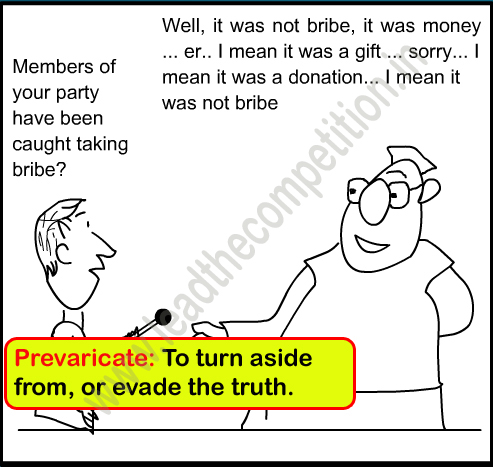 6. prevaricate: to turn aside from, or evade, the truth