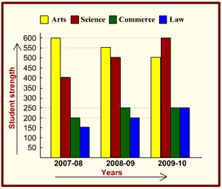 5. In which two years was the strength of non-science (Arts, Commerce and Law) students the same?